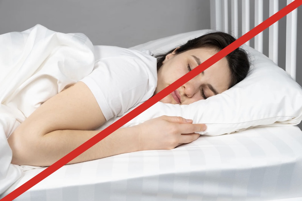 俯臥睡姿會使脊椎弧度過度拉伸,增加腰椎與頸椎壓力,不利於椎間盤的復原,因此應盡可能避免。若習慣趴睡,可練習轉為側躺或仰躺。