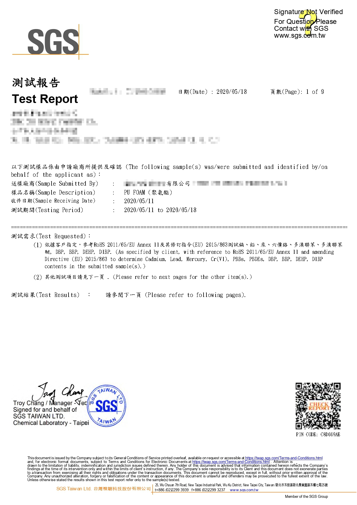 通過歐盟ROHS重金屬等有害物質認證